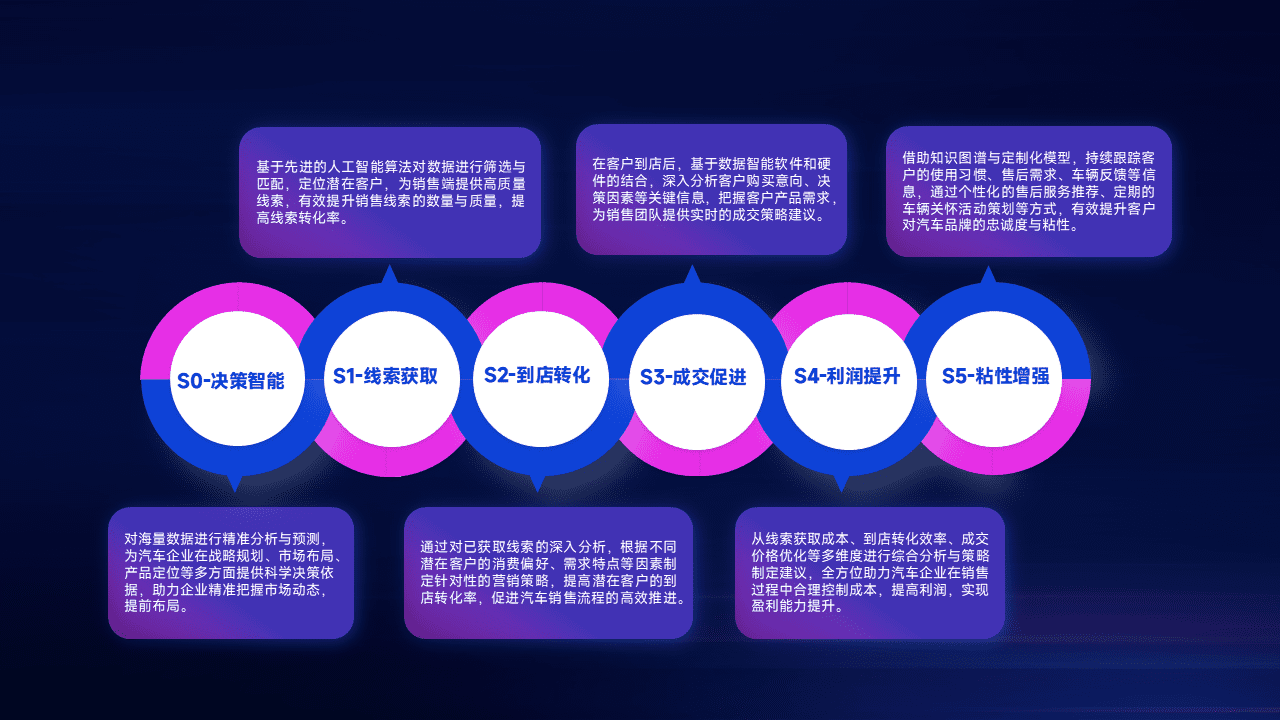 通过拓宽潜在客户来源、、、优化线索分配并提高到店转化率,,,,以增强销售效率。。同时,,,利用线索数据不断优化分析模型,,,有效提升转化率,,,扩大营销影响力。。